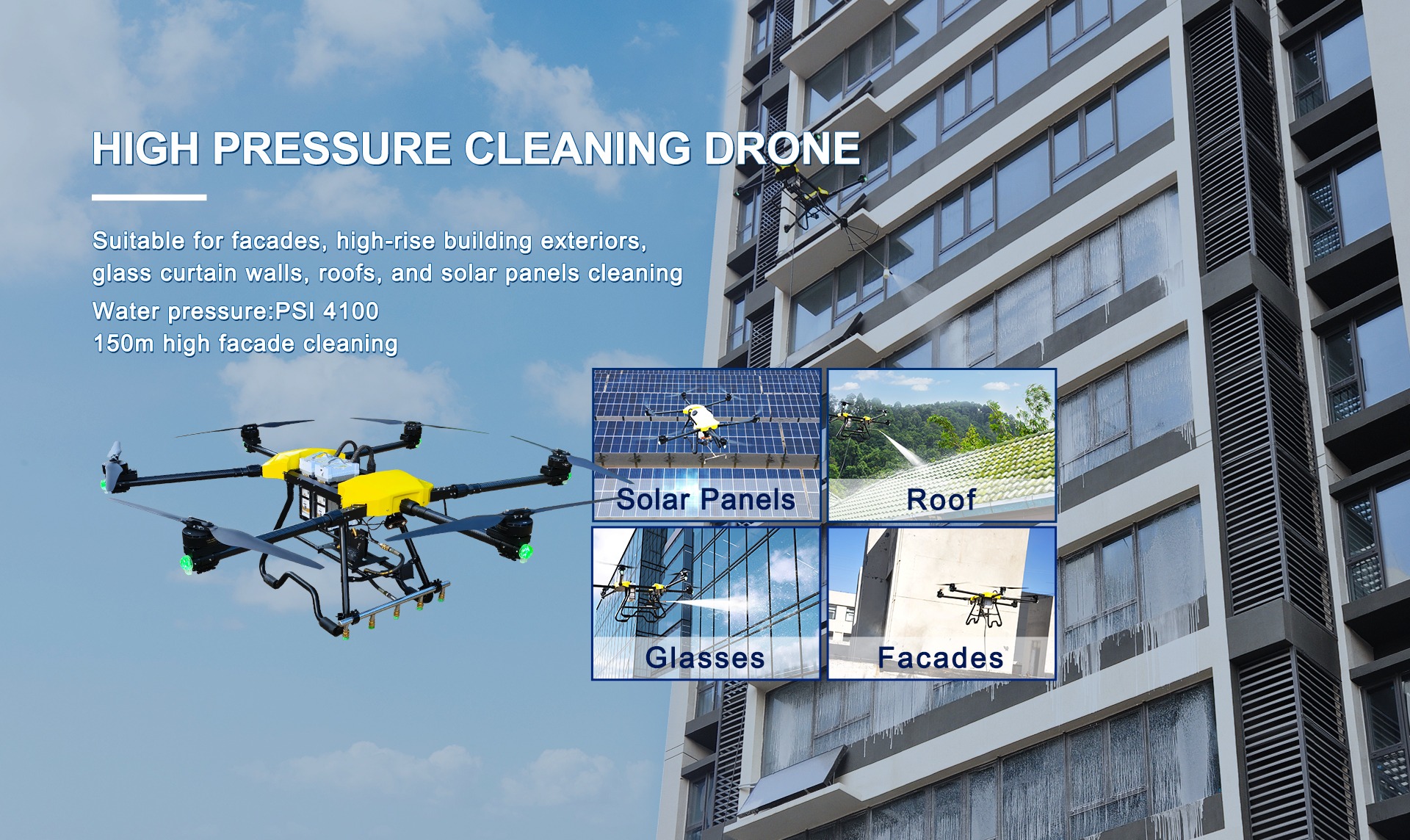 Building Facade & Window Cleaning: Maintain the pristine appearance of skyscrapers, offices, and apartment complexes.